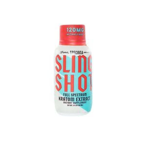 Our most powerful kratom shot yet. Promotes powerful energy & focus, full-spectrum effects, and stress-release and relaxation. Slingshot Liquid Kratom Extract contains 60mg mitragynine per serving, with 2 servings per container. Ideal for experienced users.